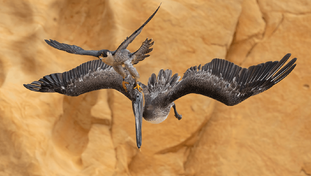 Peregrine Falcon Takes On Huge Pelican In Epic Aerial Battle And Wins