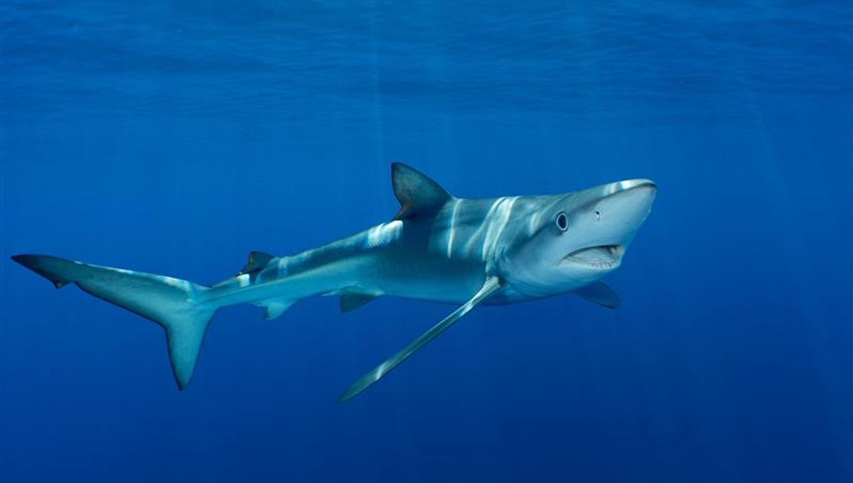 Incredibly, A Blue Shark Survived Being Impaled Through The Skull By A Swordfish