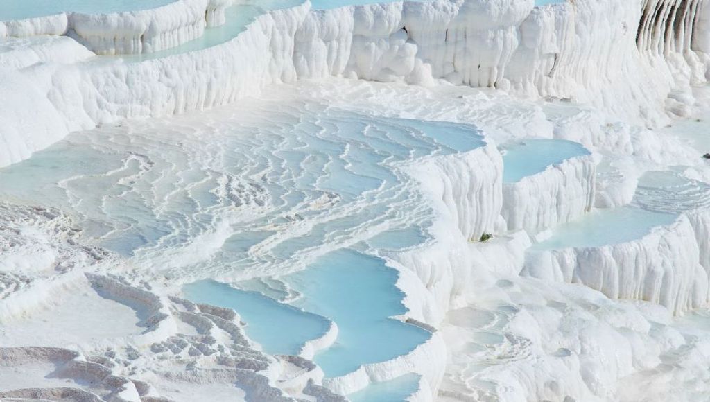 Calcite has transformed the landscape of Pamukkale in Turkey where the “Cotton Palace” has sprouted a mineral forest.