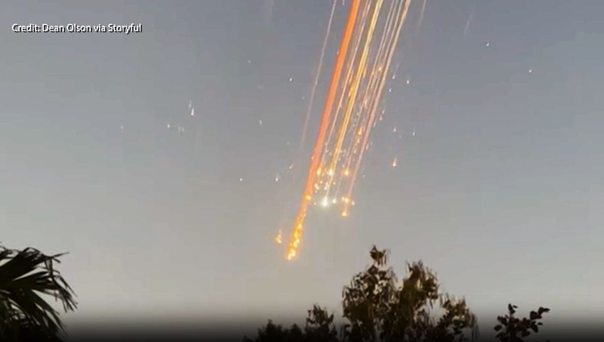 Footage of the falling debris is eclipsing footage of the booster getting caught mid-air.