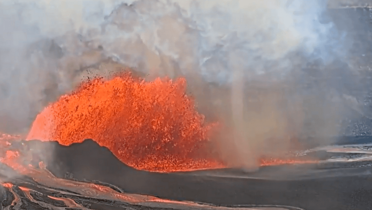 “Volnado” Dances Around Spectacular Lava Fountain In Kīlauea Volcano Crater