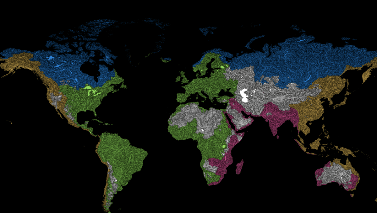 These Stunning Maps Show The Ocean Drainage Basins Of The World's Rivers